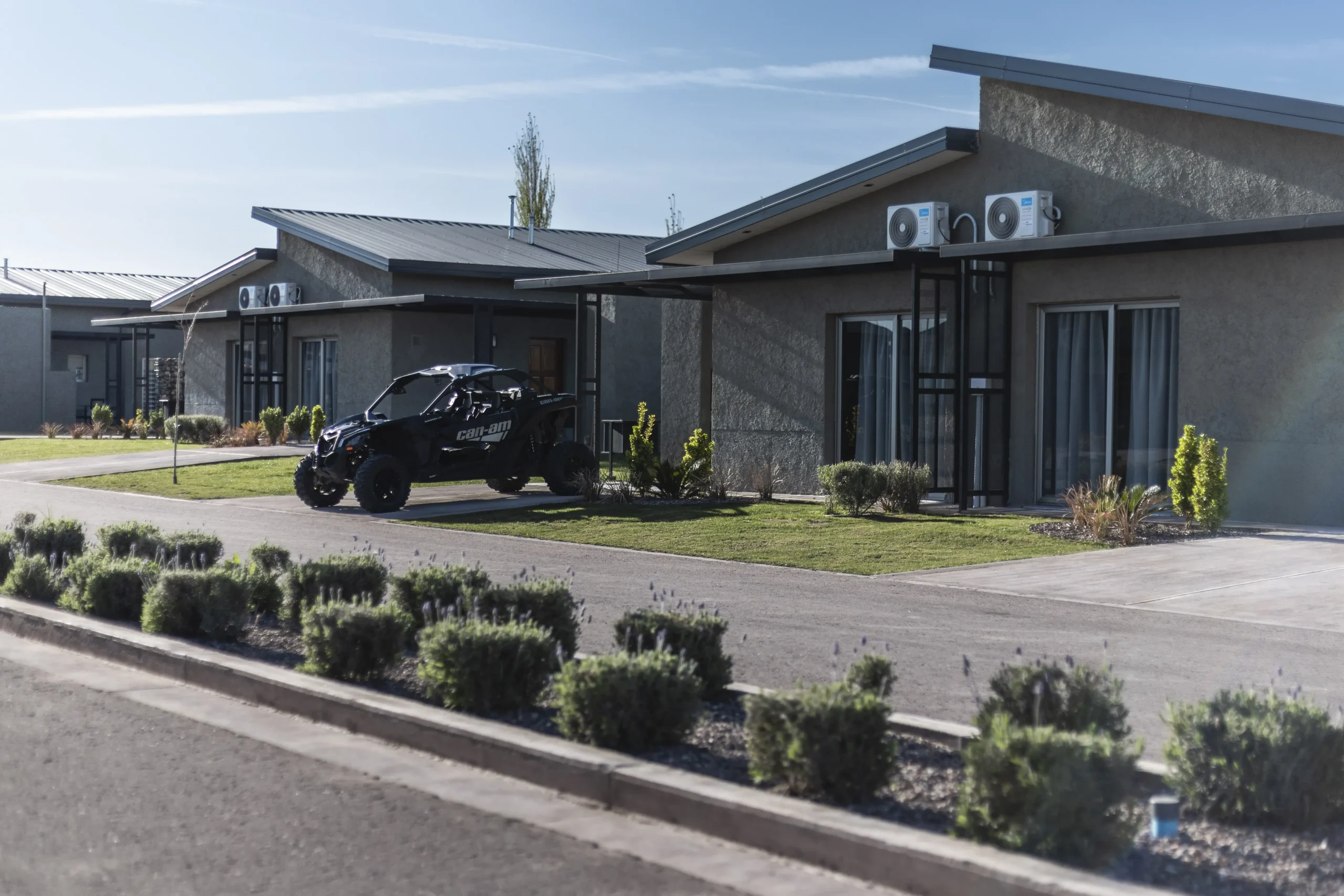 Cada cabaña está completamente equipada, cuenta con su propia churrasquera y acceso a una pileta comunitaria.
