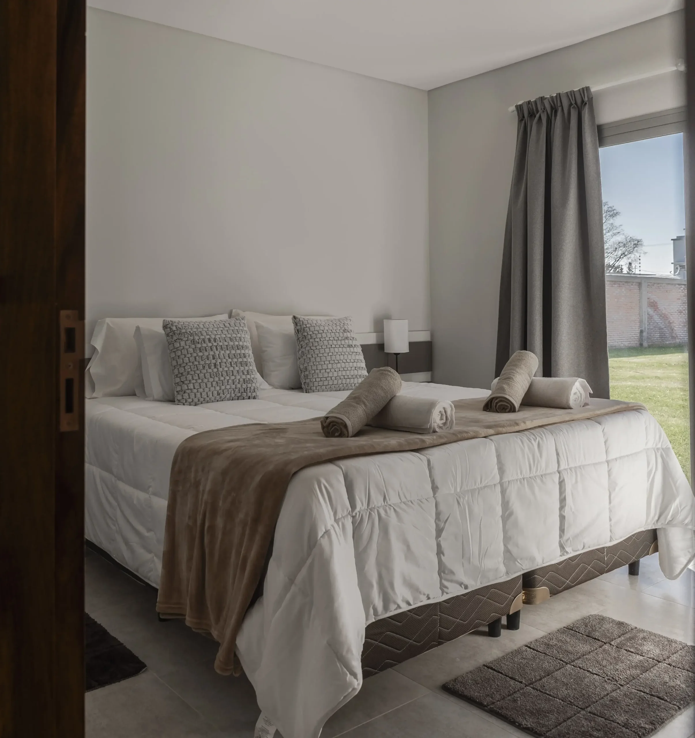 La estadía incluye desayuno seco, wifi, smart tv, servicio de limpieza de blanco y limpieza general de la cabaña cada tres días (entre las 10:00 y las 13:00 hs).