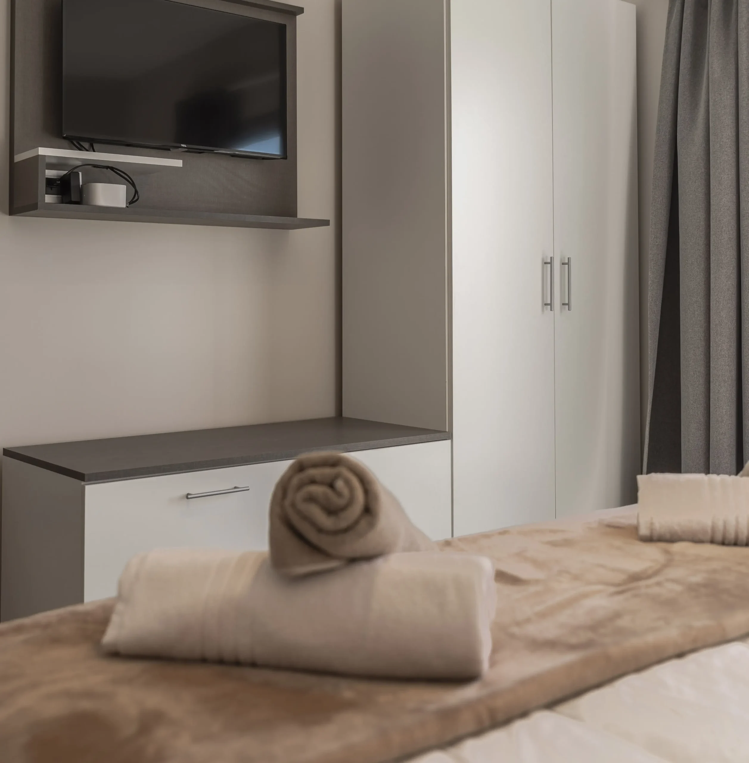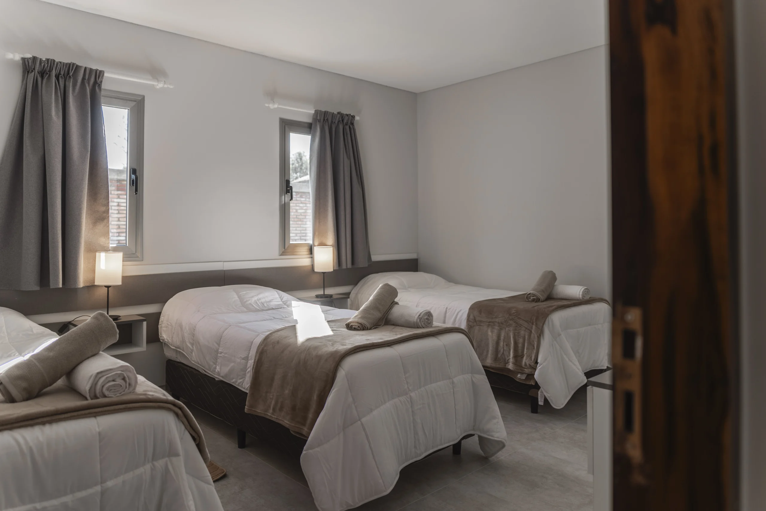 También existe la posibilidad de armar dos camas matrimoniales (una en cada habitación) más una cama individual adicional, o bien cinco camas individuales. La capacidad máxima es de 5 personas.